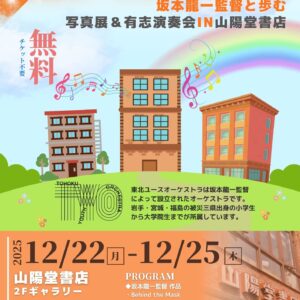 つながれ未来へのメロディー 東北ユースオーケストラ 坂本龍一監督と歩む 写真展&有志演奏会IN山陽堂書店 2025年12月22日(月)ー25日(木)